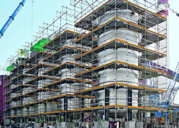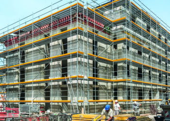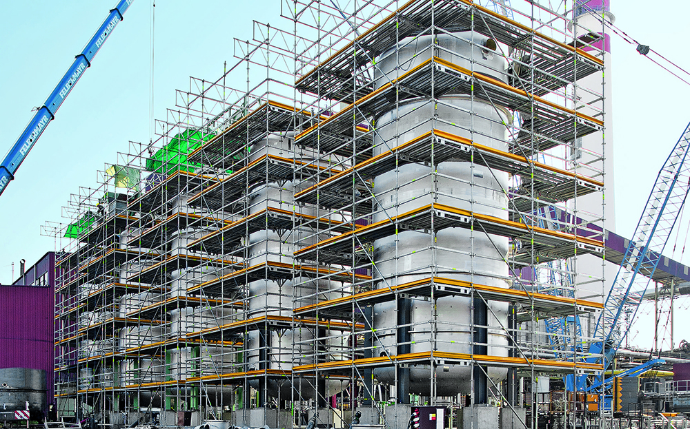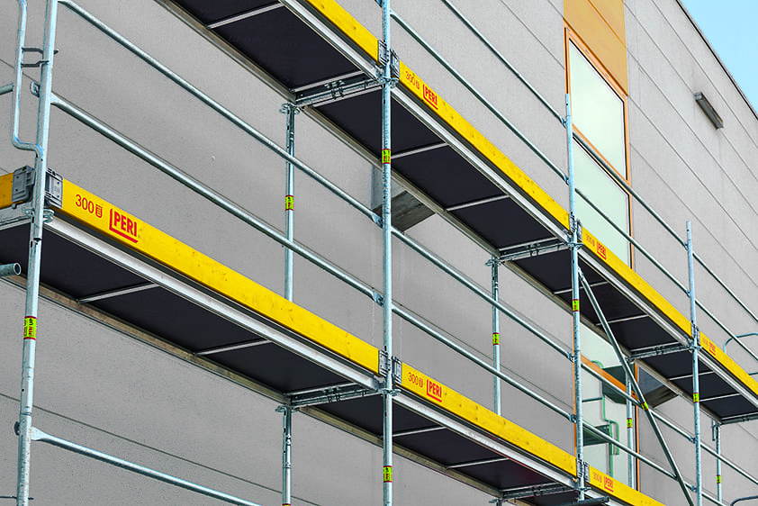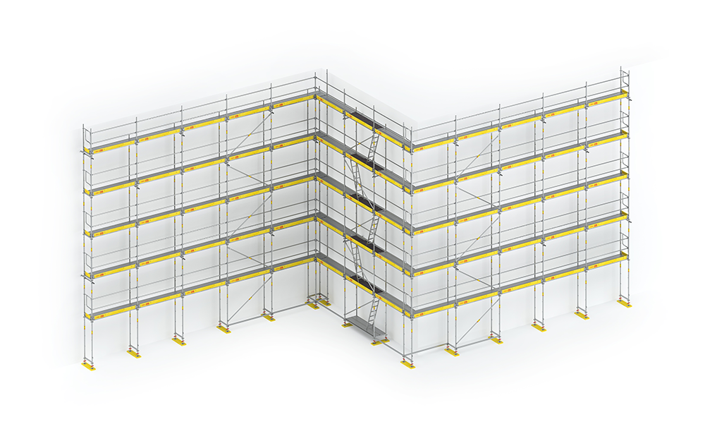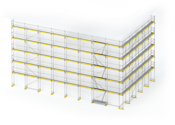 Los andamios europeos de fachada, también conocidos como andamios de frente o andamios de enlace, son una forma especial de andamio rígido que se usa a menudo para la construcción y el mantenimiento de edificios.
