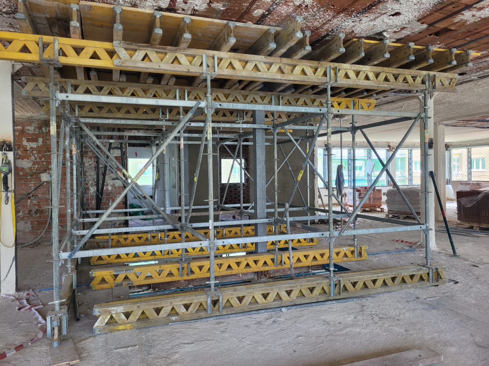 La función principal de las cimbras es proporcionar un soporte temporal a la estructura mientras se construyen los elementos permanentes, como paredes, techos y vigas.